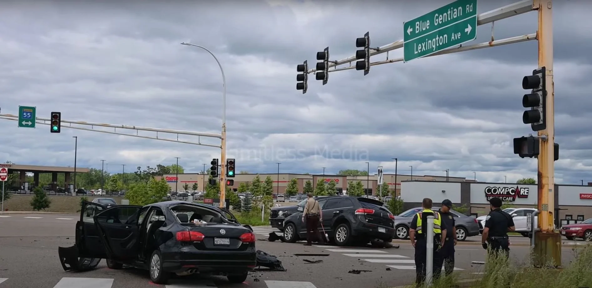 EAGAN, MINNESOTA—A serious accident at the intersection of Highway 55 and Lexington Avenue on Saturday, June 29, 2024, resulted in road closures and a significant emergency response. Around 3:05 PM, emergency personnel were called to the crash scene involving two vehicles.